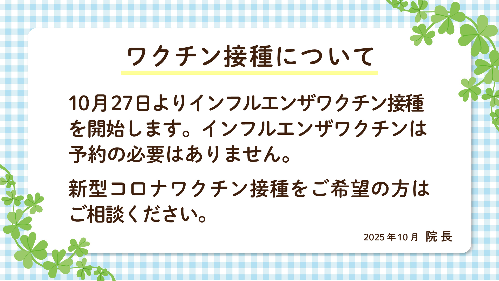 - 予防接種のご相談へ応じています